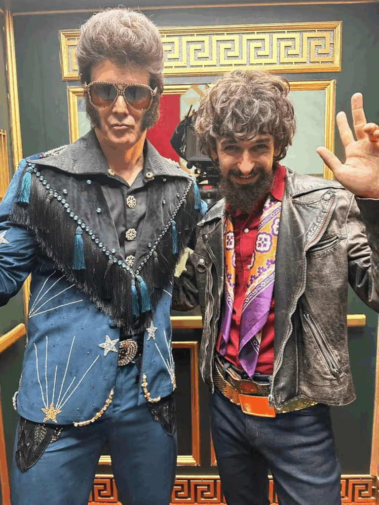 Supla aparece caracterizado como Elvis em cenas que misturam realidade e fantasia, ao lado de Ravel Andrade, que dá vida a Raul da juventude à maturidade. A estética onírica da série reforça o tom quase mítico da relação entre ídolo e fã, como se o espírito do rock’n’roll atravessasse gerações e se manifestasse em forma de legado.